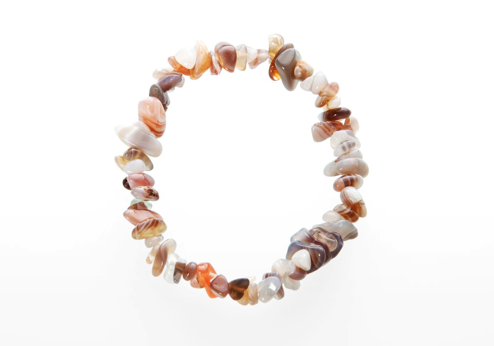 přibližná šířka: 8mm, přiblližná obvodová délka: 18 cm - náramek je částečně roztažitelný a pružný. Achát odstraňuje napětí a apatii, tiší nejrůznější bolesti, napomáhá uvolnění při dýchacích a očních nemocech. Vhodný je také při kožních chorobách a bolestech hlavy. Nastávajícím maminkám může prospět u porodu.
