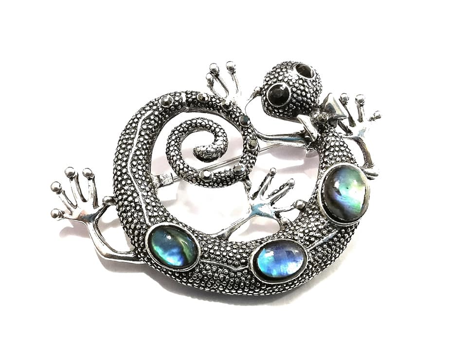 3. Brož ještěrka zatočená brož i přívěsek s perletí Paua