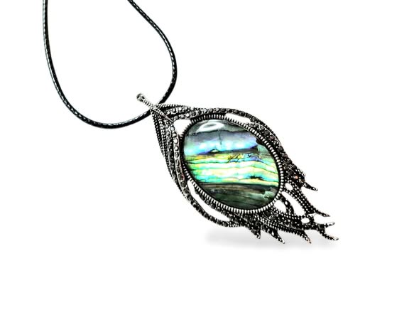 Přívěsek s paua mušlí . PAUA je druhem mušle abalone (Haliotis Iris) z moří Nového Zélandu. Jeho původní obyvatelé, Maorové, ji nazývají „Paua Te Koha a Tangaroa“ – Dar mořského boha. Maorská legenda praví, že paua je zvláštní darem od Tangaroa, boha moře. Nachází se jen na pobřežích Nového Zélandu, kde žije na skalnatém pobřeží, nejlepší mušle paua pocházejí z jižní části vod okolo NZ. Žije v hloubce cca 10 metrů zavěšena na skalnatých výčnělcích. Paua je nejbarevnější mušlí z druhu abalone, žádná jiná mušle na světě nemá tak zářivé a plné barvy. Při natáčení ve světle pod různými úhly mění barvy a proměňuje je v duhu. Svou měňavou hrou barev je tak podobná krystalům opálu. Paua byla tradičně užívána Maory při tvorbě jejich uměleckých řezeb, zejména očí jejich soch. Paua má velký význam v maorských tradicích, je nezbytná pro svatební obřady a jiné oslavy. Dnes se používá paua pro výrobu šperků a její střípky pro výrobu bižuterie.