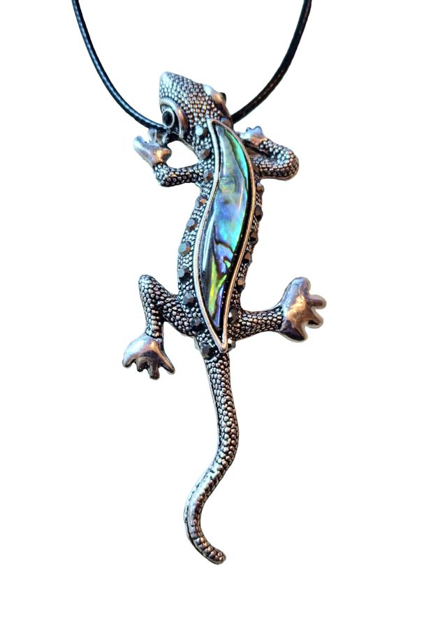 Ještěrka gekon brož i přívěsek s perletí Paua