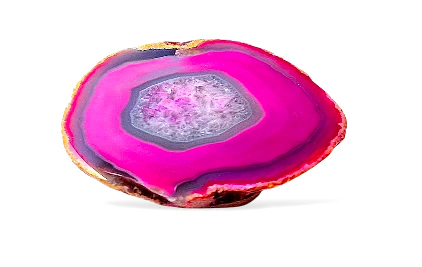 Acháty dobře absorbují tekutiny, které se následně vpíjí do jednotlivých vrstviček dle stupně jejich pórovitosti. Tyto achátové plátky jsou obarveny .
