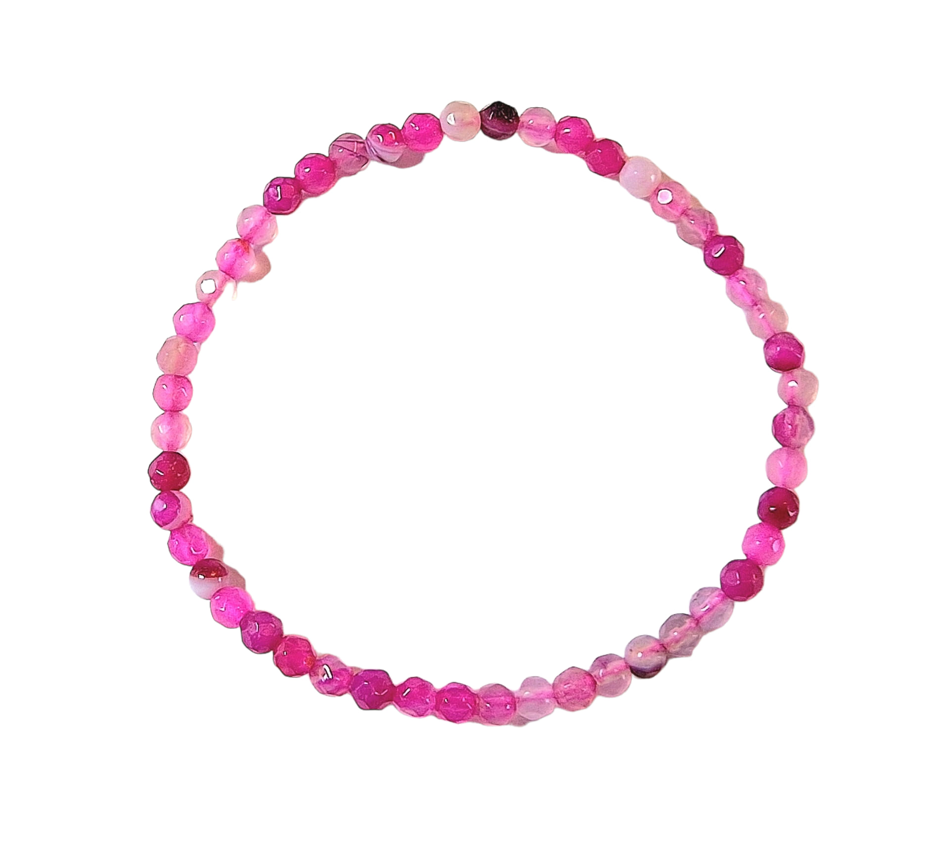 Náramek je  barvený. Náramek je částečně roztažitelný a pružný. Achát odstraňuje napětí a apatii, tiší nejrůznější bolesti, napomáhá uvolnění při dýchacích a očních nemocech. Vhodný je také při kožních chorobách a bolestech hlavy. Nastávajícím maminkám může prospět u porodu.       celý popis
