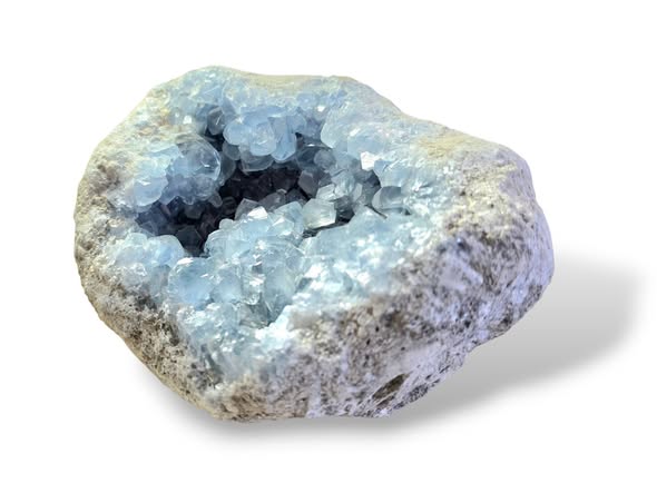 Krásná přírodní celestýnová drúza.Celestin je pro svou nádhernou modrou barvou a energii považován kámen KOMUNIKACE A INTUICE. Je podporující v oblasti komunikace verbální i mimosmyslové, v umění říkat věci narovinu a vnímat, když druhý lže a manipuluje. Napomáhá nám, abychom viděli život z nadhledu... celý popis