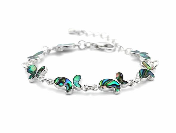 Náramek s paua mušlí zasazený do bílého kovu, neobsahujícího nikl. PAUA je druhem mušle abalone (Haliotis Iris) z moří Nového Zélandu. Jeho původní obyvatelé, Maorové, ji nazývají „Paua Te Koha a Tangaroa“ – Dar mořského boha. Maorská legenda praví, že paua je zvláštní darem od Tangaroa, boha moře. Nachází se jen na pobřežích Nového Zélandu, kde žije na skalnatém pobřeží, nejlepší mušle paua pocházejí z jižní části vod okolo NZ. Žije v hloubce cca 10 metrů zavěšena na skalnatých výčnělcích. Paua je nejbarevnější mušlí z druhu abalone, žádná jiná mušle na světě nemá tak zářivé a plné barvy. Při natáčení ve světle pod různými úhly mění barvy a proměňuje je v duhu. Svou měňavou hrou barev je tak podobná krystalům opálu. Paua byla tradičně užívána Maory při tvorbě jejich uměleckých řezeb, zejména očí jejich soch. Paua má velký význam v maorských tradicích, je nezbytná pro svatební obřady a jiné oslavy. Dnes se používá paua pro výrobu šperků a její střípky pro výrobu bižuterie.