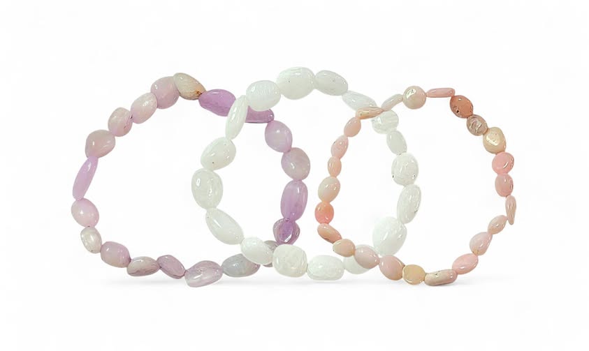 Sada 3 nepravidelných náramků v kombinaci opál, měsíční kámen a kunzit.