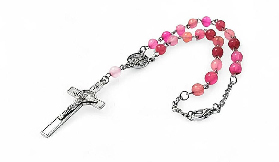 Elegantní Růženec do auta nebo jako náramek na ruku z - Kovový křížek s Ježíšem a medailonek s pannou Marií průměr korálků: