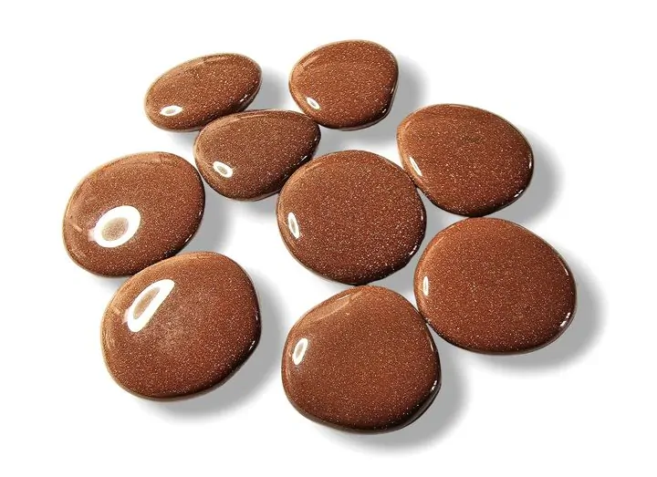 SLUNEČNÍ KÁMEN (syntetický) - zahání deprese, chmury a strach. Do duše vnáší jas, naděj a vitalitu. Stimuluje nervový systém. Tlumí nervozitu, přináší klidný a ničím nerušený spánek. Mírní astmatické záchvaty, tiší revmatické bolesti.